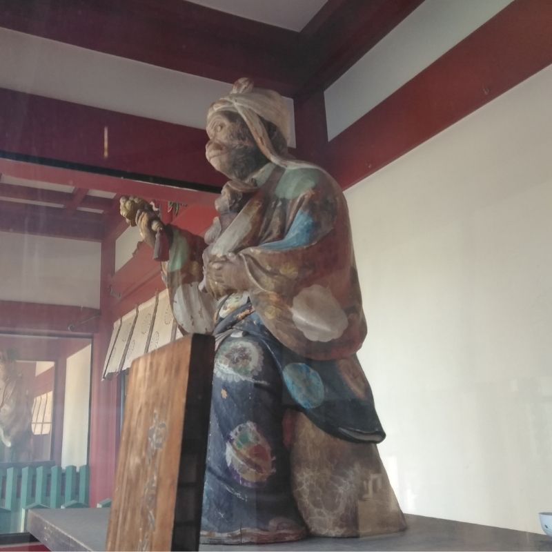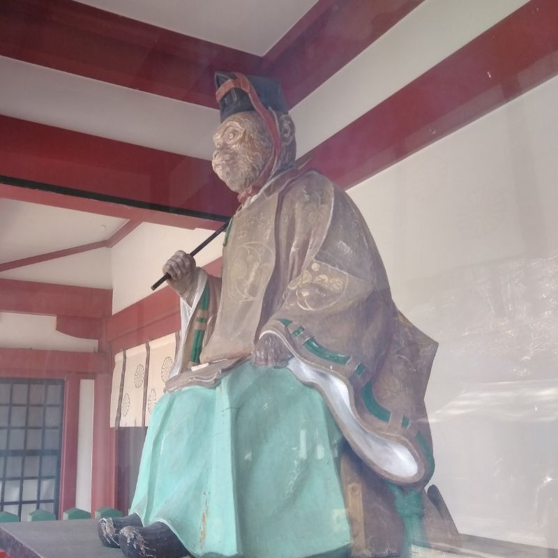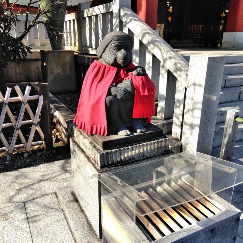 文明10年1478年に太田道灌が、江戸に城を築く際に川越山王社から勧請したとされる神社です。地元では、山王さんと呼ばれて親しまれている神様です。御祭神は、山の神様である大山咋神(オオヤマクイノカミ)です。山の神様なので、狛犬ではなく、神猿(まさる)さんが、迎えてくださいます。