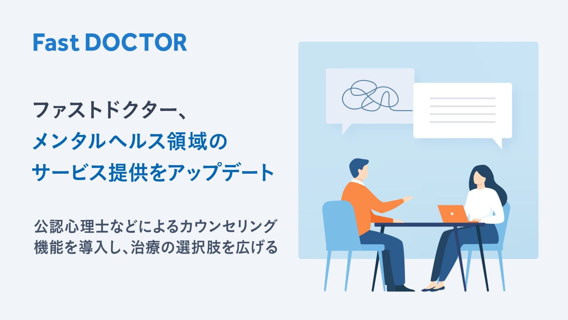 ファストドクター、メンタルヘルス領域のサービス提供をアップデート。公認心理士などによるカウンセリング機能を導入し、治療の選択肢を広げる