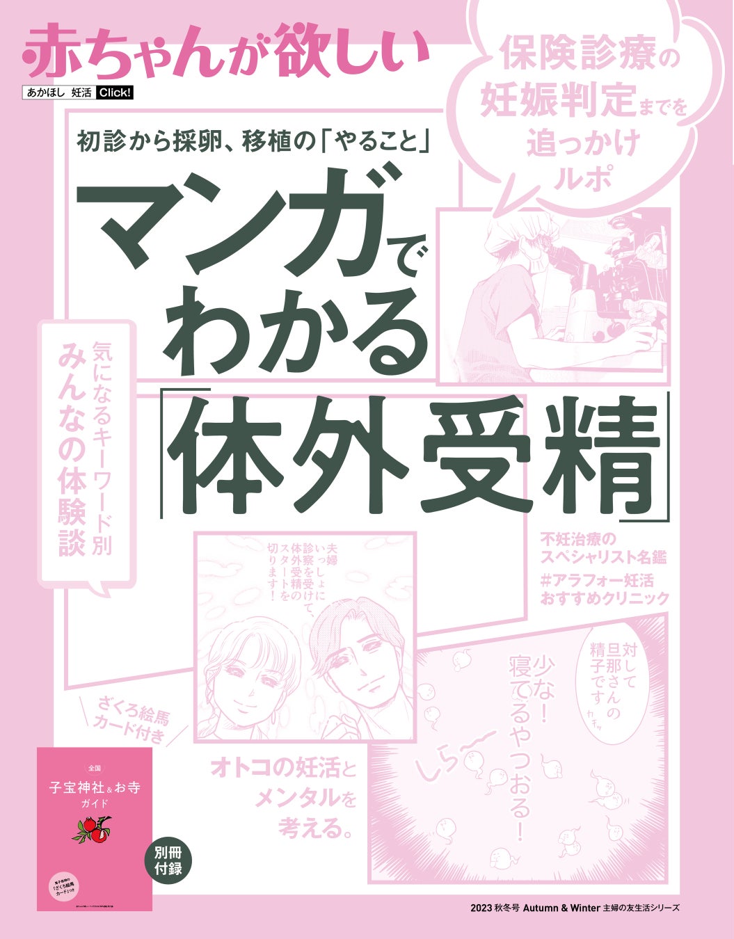株式会社主婦の友社は、2023年10月16日(月)にムック『赤ちゃんが欲しい マンガでわかる「体外受精」』(https://www.amazon.co.jp/dp/4074557819/)を発売いたしました。