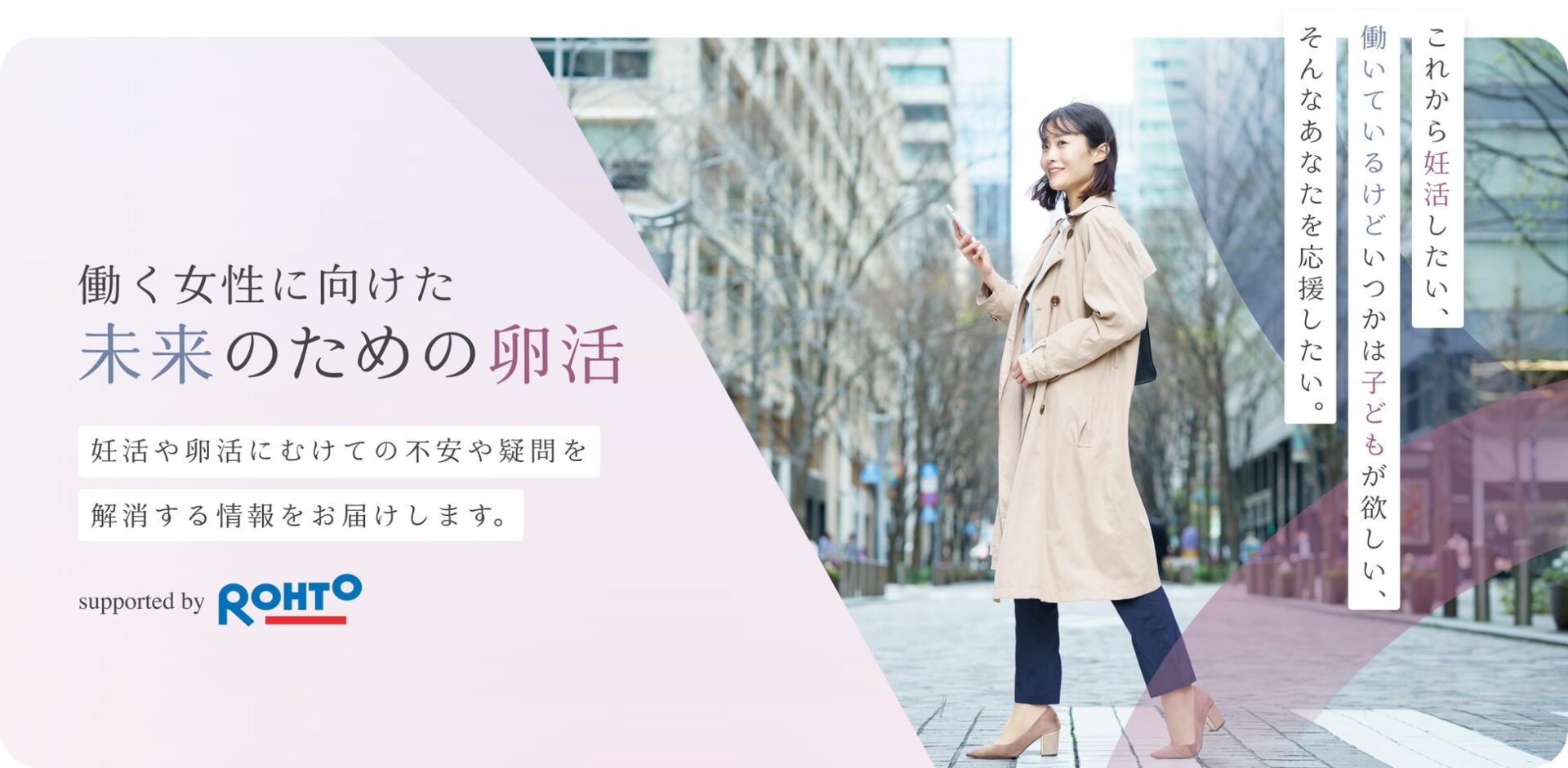 ロート製薬は30年以上、時代時代の女性のお悩みに寄り添い、女性を応援する商品・サービスの提案を行ってきました。現代の多様化するキャリアや生き方の選択に対応するため、特に働く女性が悩みがちな問題の一つである「妊活」に関する事業、知識の普及、研究開発に力を入れています。