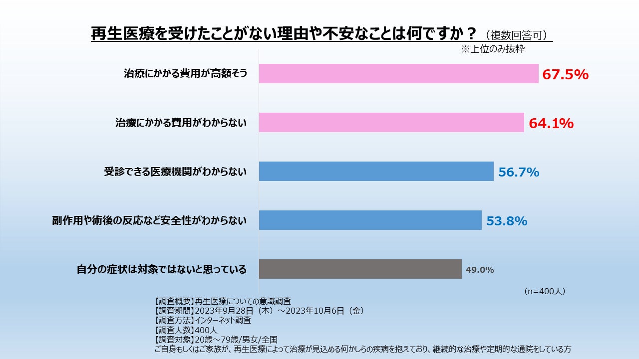 そこで、「再生医療を受けたことがない理由や不安なことは何ですか?」という質問(複数回答可)を行ないました。