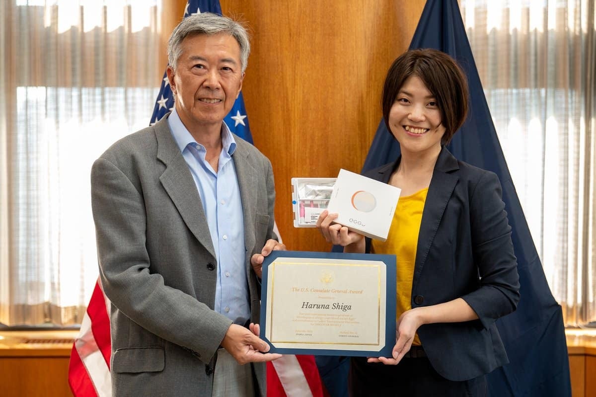 (写真) 大阪市経済戦略局産業振興部企業支援課担当係長 大橋俊夫様へEggUの贈呈
