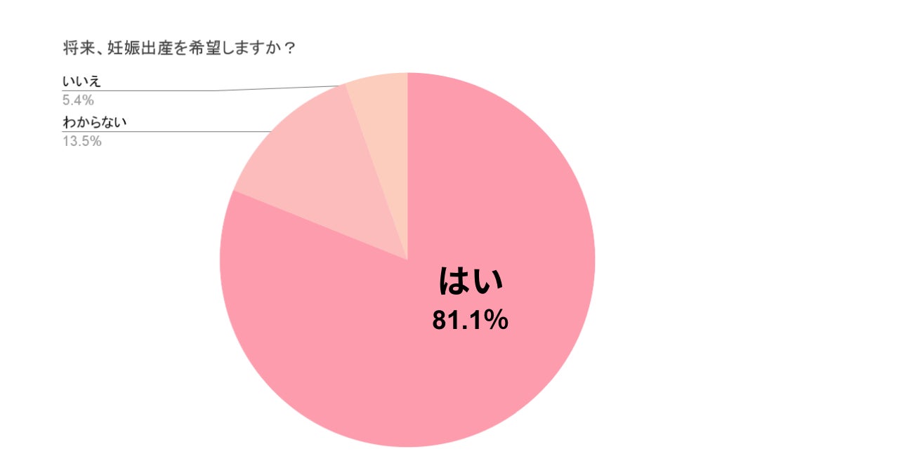 回答者の80%以上が、将来、妊娠を「希望する(81.1%)」。