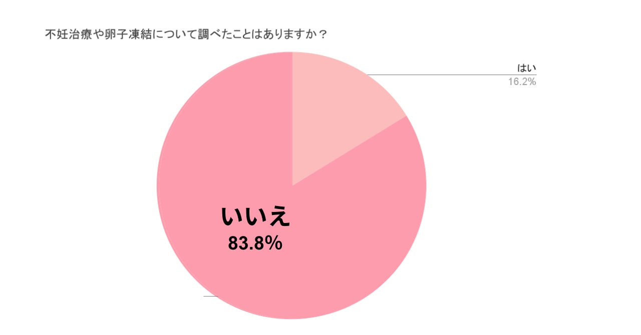 「不妊治療や卵子凍結について調べたことはありますか?」という項目では、「いいえ(83.8%)」が大多数に。