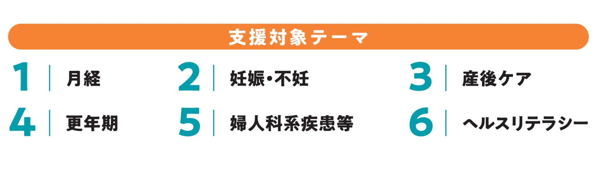 女性の健康課題解決に関する、以下6テーマの開発・改良・普及を支援します。
