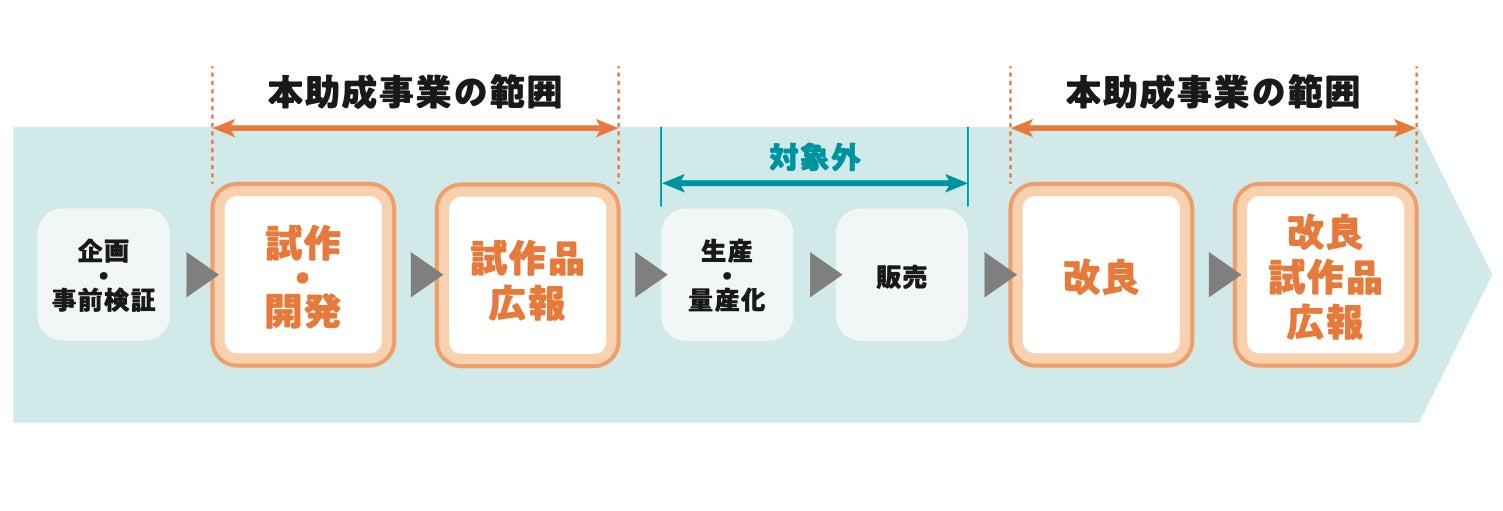新規開発だけでなく、既存製品の改良開発・改良後の普及(試作品広報)も支援対象