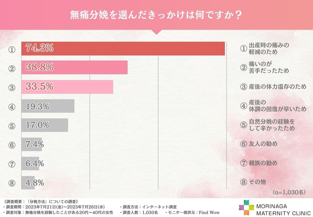 7割以上の方の無痛分娩を選んだきっかけは“出産時の痛み軽減”と判明
