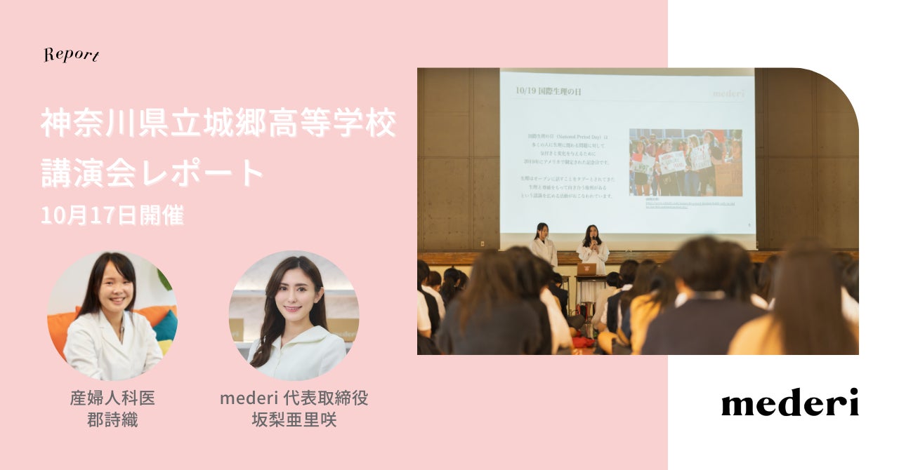 オンラインピル診療サービス『mederi Pill(メデリピル)』を展開するmederi株式会社(東京都目黒区、代表取締役:坂梨 亜里咲 以下、当社)は、神奈川県立城郷高等学校にて、2023年10月17日(火)に高校3年生の生徒約244名(男女)へ向けた「生理/PMSに関する講演会」を実施しました。