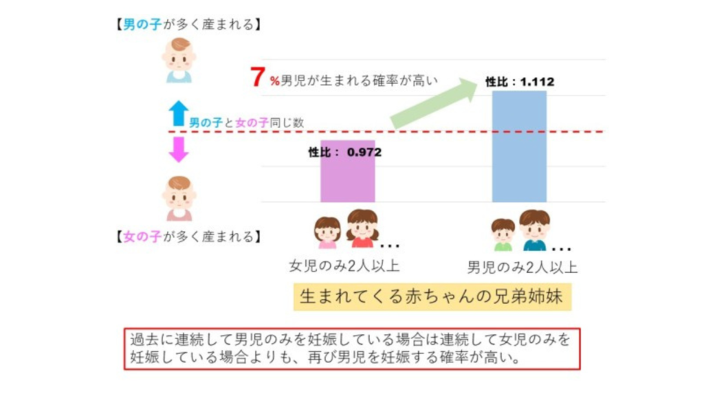 • 一人目が男の子であれば、二人目も男の子の可能性が高い。