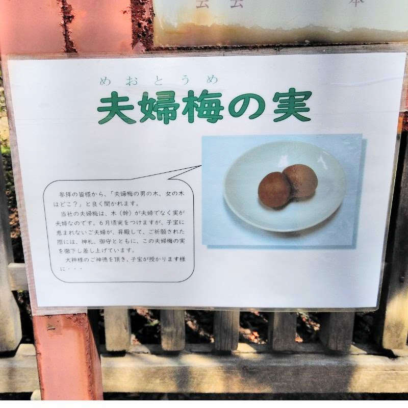 夫婦梅との名称から、現地で夫婦二本の梅を探される方が多いそうですが、夫婦一対のように実をつけることから名付けられた一本の木です。
