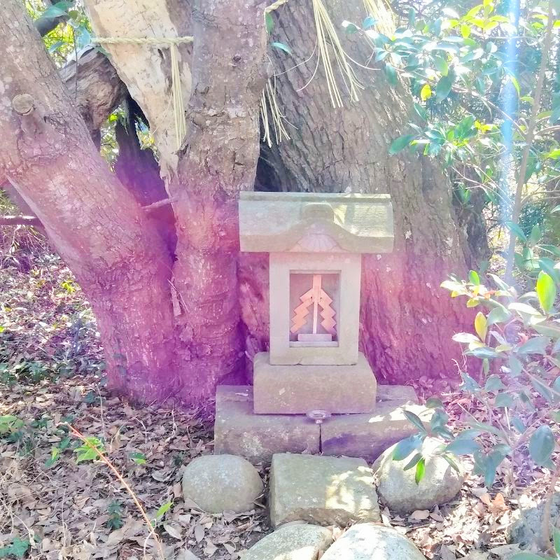 3つ目は鳥居をくぐって境内に入って左手にある「ご神木と石祠」です。