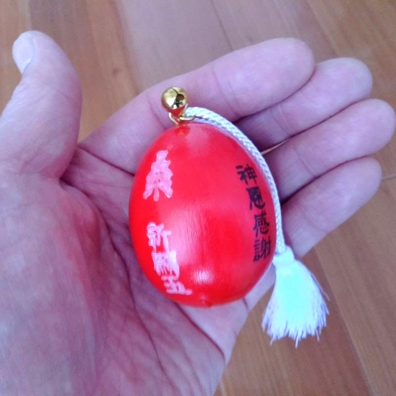 祈願玉は抱きかかえる、手でなでるなどしながら願い事を祈ることによって叶うと云われています。祈願玉の中には、ご神体の帯として使われている麻を赤く染めたものが入れられています。毎年11月の吉日に神さまのお召し物を新しくする神事が執り行われ、それまでにお召しになっていた赤帯が祈願玉やお守りなどの授与品にも入れられており、縁起がいいものとして有名です。