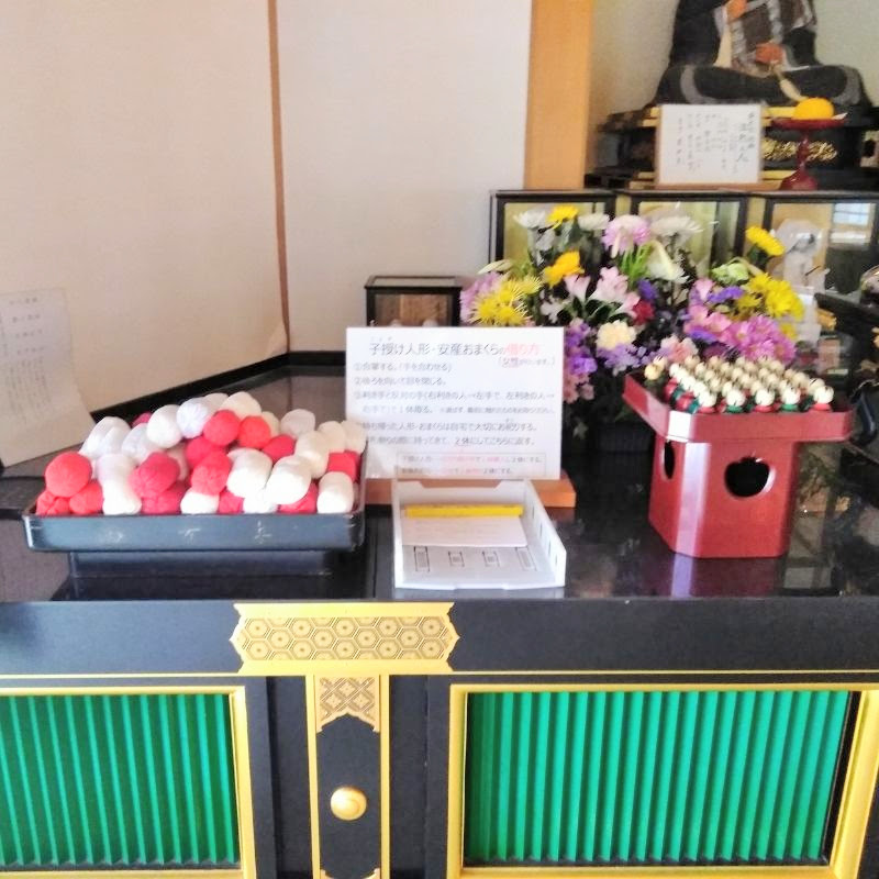 子授け祈願の後、ご本堂に置かれている「子授け人形」の前で合掌し、人形を背にするように後ろ向きで人形に手を伸ばし最初に触った人形をお借りします。